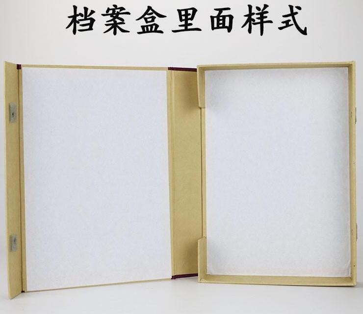 该档案盒采用工业纸板站街而成,通过棉布的连接,封面和脊背采用牛皮纸,里面使用白纸裱糊。...